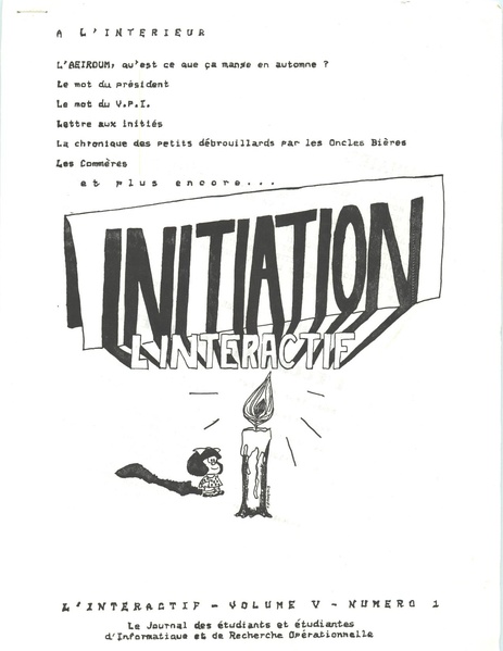 L’Interactif, le journal des étudiants et étudiantes d’informatique et recherche opérationnelle, volume 5, numéro 1, septembre 1986