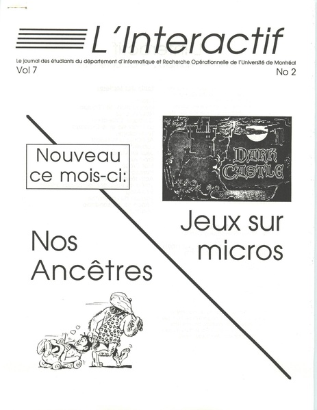 L’Interactif, le journal des étudiants du département d’informatique et recherche opérationnelle, volume 7, numéro 2, octobre 1988