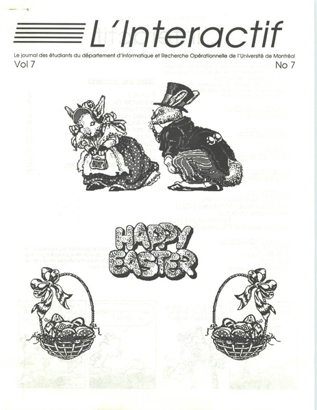 L’Interactif, le journal des étudiants du département d’informatique et recherche opérationnelle, volume 7, numéro 7, mars 1989