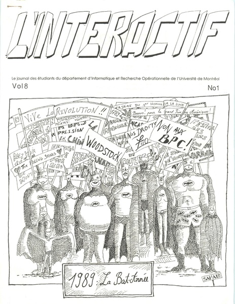 L’Interactif, le journal des étudiants du département d’informatique et recherche opérationnelle, volume 8, numéro 1, septembre 1989