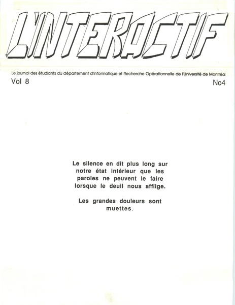L’Interactif, le journal des étudiants du département d’informatique et recherche opérationnelle, volume 8, numéro 4, décembre 1989