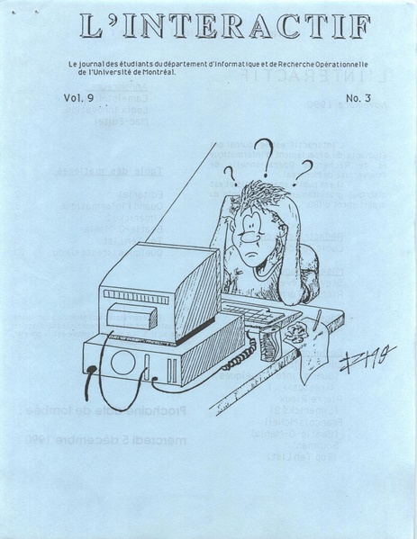 L’Interactif, le journal des étudiants du département d’informatique et recherche opérationnelle, volume 9, numéro 3, novembre 1990