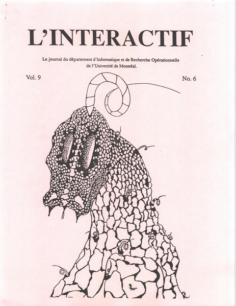 Révision datée du 28 novembre 2025 à 19:07 par MattéoDelabre (discussion | contributions) (L’Interactif, le journal des étudiants du département d’informatique et recherche opérationnelle, volume 9, numéro 6, février 1991)