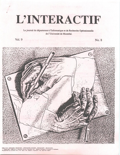 Révision datée du 28 novembre 2025 à 19:08 par MattéoDelabre (discussion | contributions) (L’Interactif, le journal des étudiants du département d’informatique et recherche opérationnelle, volume 9, numéro 8, avril 1991)