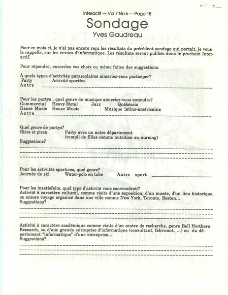 L’Interactif, le journal des étudiants du département d’informatique et recherche opérationnelle, volume 7, numéro 6, février 1989