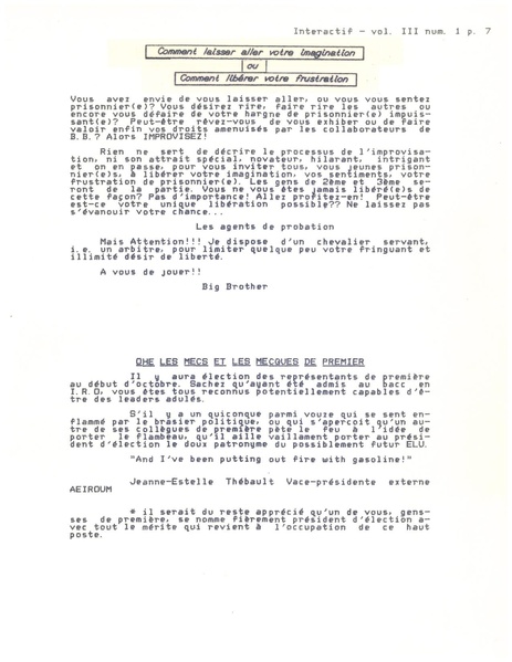 L’Interactif, le journal des étudiant(e)s en informatique et recherche opérationnelle, volume 3, numéro 1, 5 septembre 1984