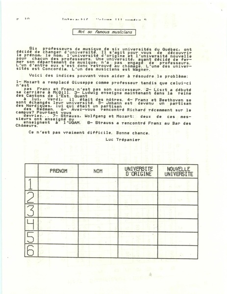 L’Interactif, le journal des étudiant(e)s en informatique et recherche opérationnelle, volume 3, numéro 5, 31 octobre 1984