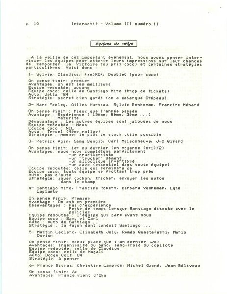 L’Interactif, le journal des étudiant(e)s en informatique et recherche opérationnelle, volume 3, numéro 11, 13 mars 1985