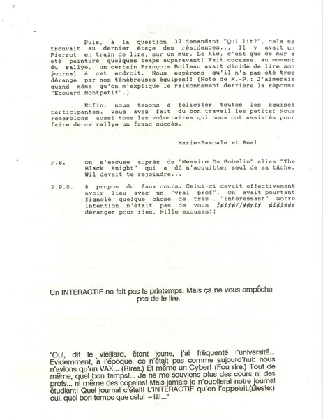 L’Interactif, le journal des étudiants du département d’informatique et recherche opérationnelle, volume 6, numéro 2, octobre 1987