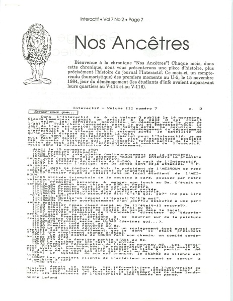 L’Interactif, le journal des étudiants du département d’informatique et recherche opérationnelle, volume 7, numéro 2, octobre 1988