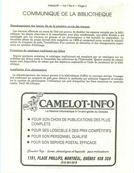 L’Interactif, le journal des étudiants du département d’informatique et recherche opérationnelle, volume 7, numéro 4, décembre 1988