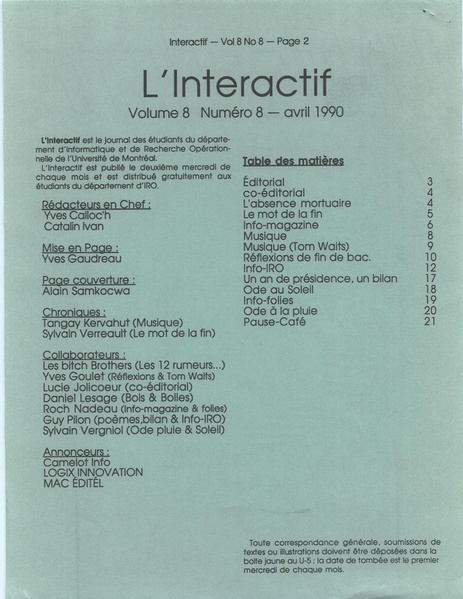 L’Interactif, le journal des étudiants du département d’informatique et recherche opérationnelle, volume 8, numéro 8, avril 1990