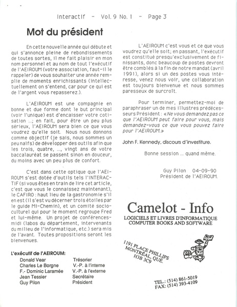L’Interactif, le journal des étudiants du département d’informatique et recherche opérationnelle, volume 9, numéro 1, septembre 1990