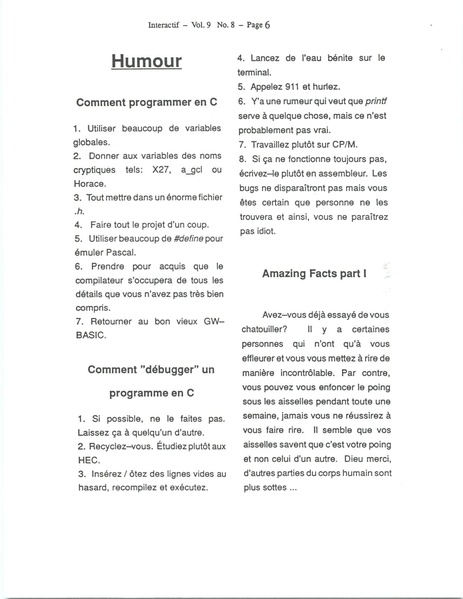 L’Interactif, le journal des étudiants du département d’informatique et recherche opérationnelle, volume 9, numéro 8, avril 1991